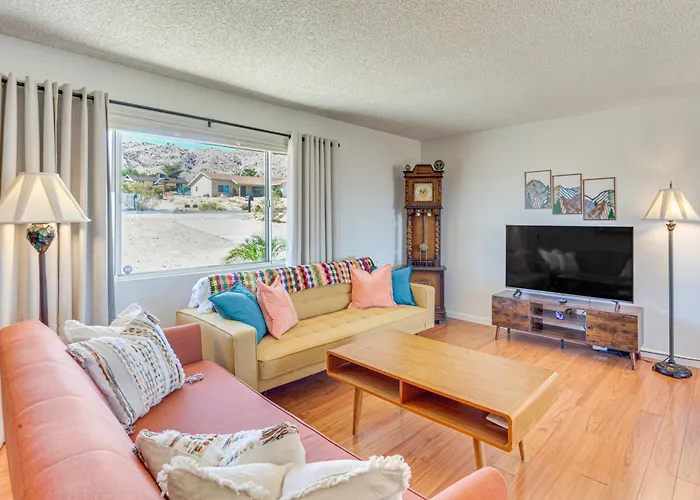 Die Villa 6 Mi To Joshua Tree Np! Mtn-View Gem With Game Room bietet eine Terrasse und liegt rund 2 Kilometer von den Joshua Tree Health Foods entfernt.